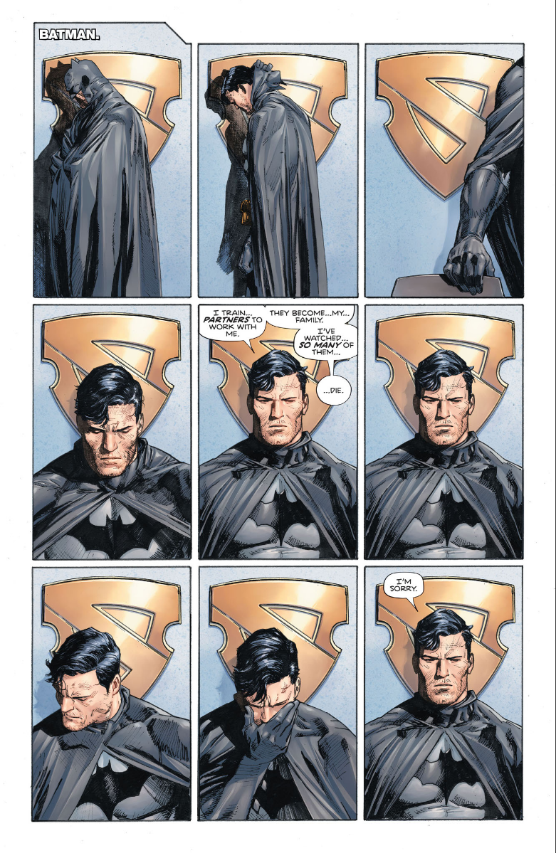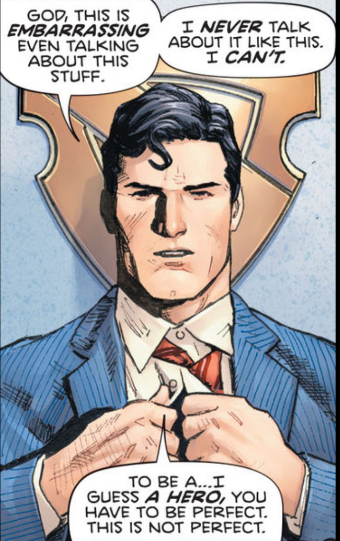 And isn’t that the general refrain from fans? Marvel’s supers are just like us but DC’s are embodiments of ideals. Aspirational. More than human. Yet, as more and more stories acknowledge, in private they struggle, and they struggle alone.